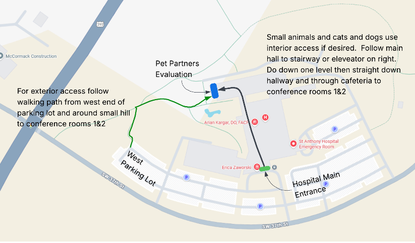 Evaluations are conducted by a licensed Pet Partners Therapy Team Evaluator and are required as part of the Pet Partners team registration process. Teams will demonstrate skills that support safe, predictable, and comfortable visits in environments such as hospitals, schools, libraries, and community programs.